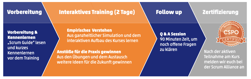 Die CSPO-Zertifizierung ist online nach der Anmeldung direkt verfügbar – ohne zusätzliche Prüfung. Die Teilnahme am vollständigen Training ist die Voraussetzung.